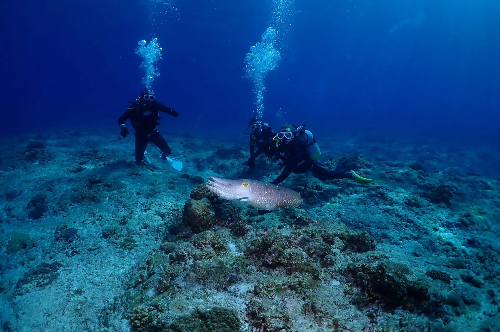 日本からのお客様はやったことありましたがだいぶ前とのことですこし緊張していましたがスムーズに潜ることができてコブシメやクマノミに癒されてきました