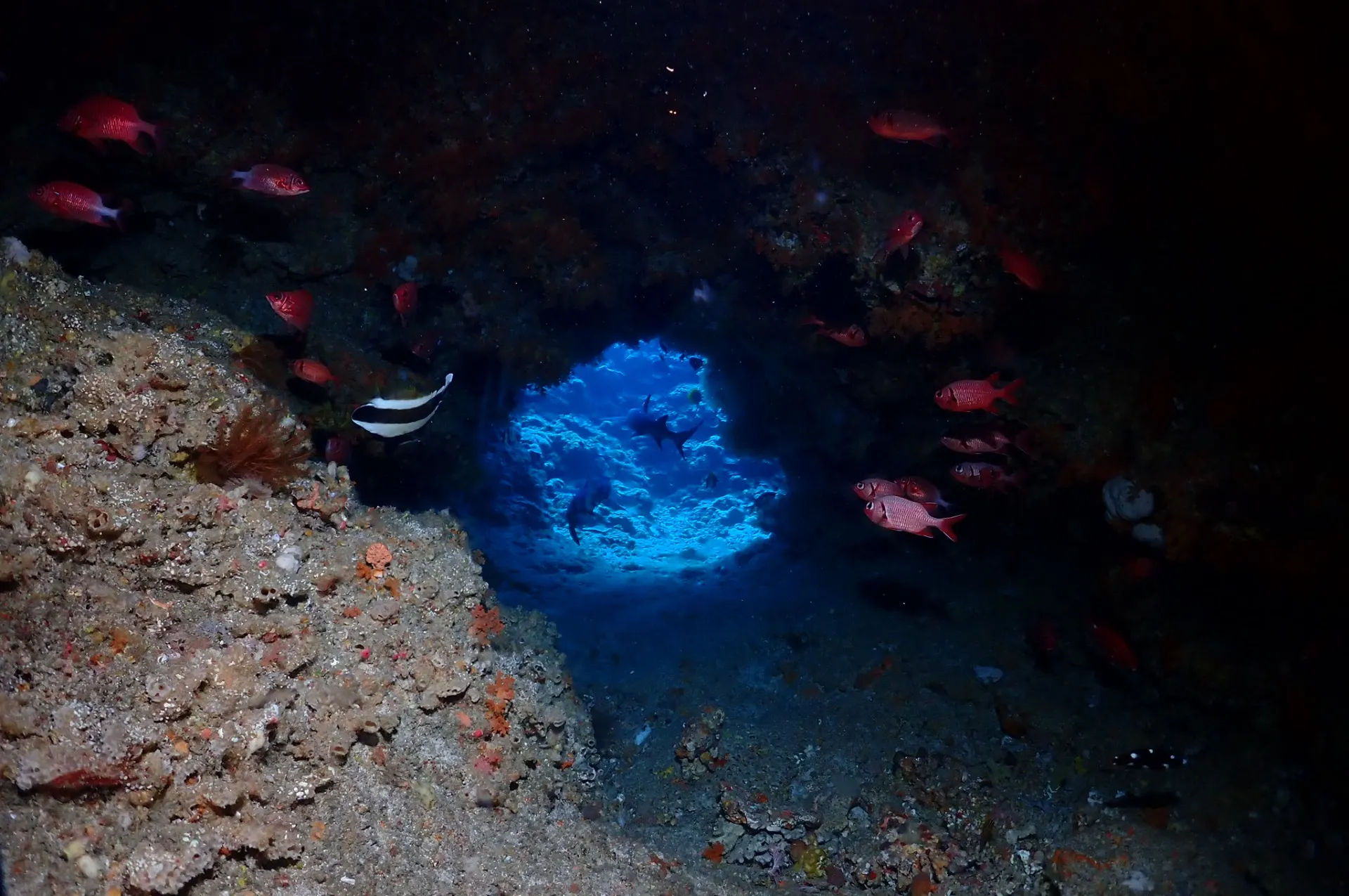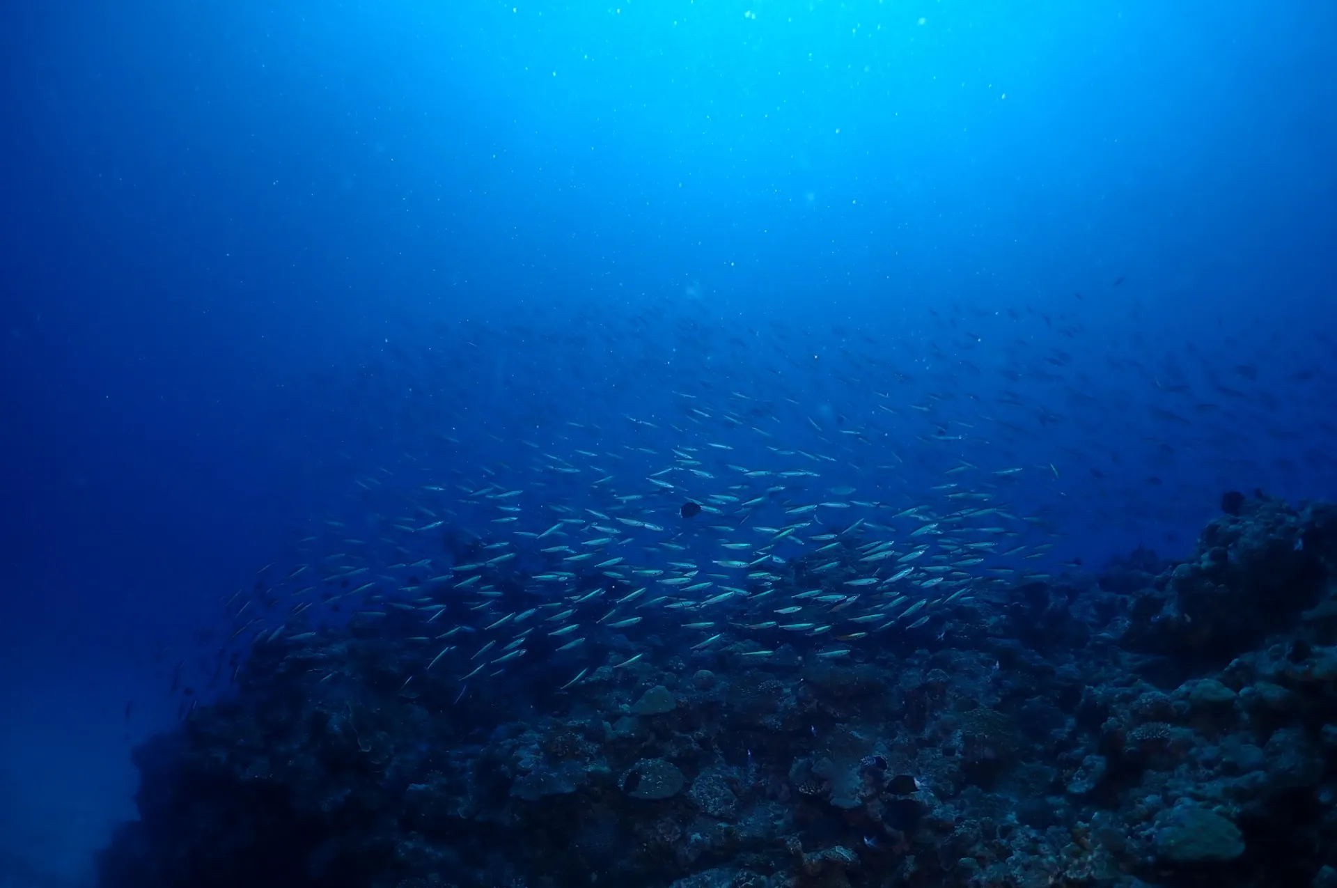 1本目からドリフトダイビングでマダラトビエイやマグロ、ネムリブカなど見ることができました