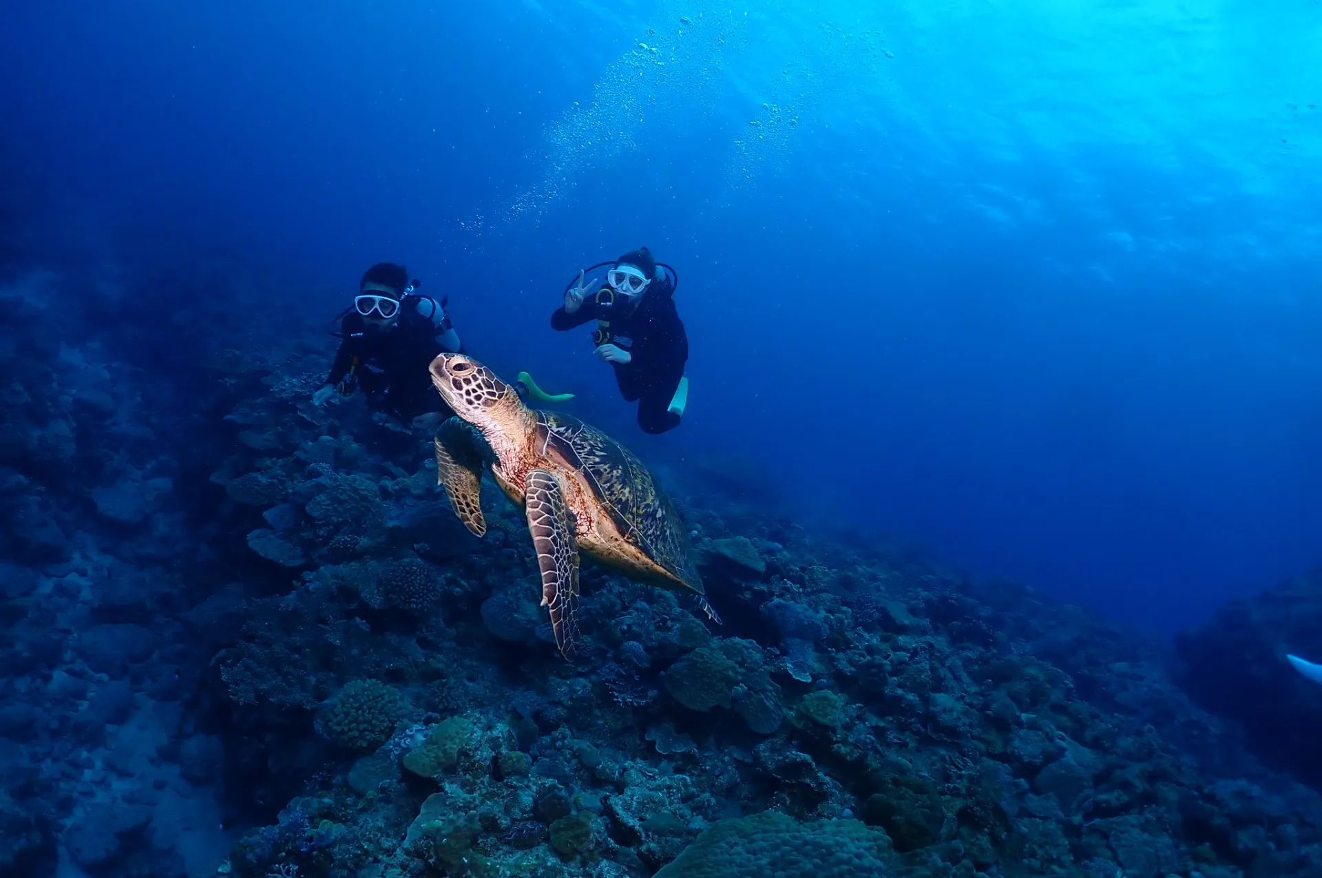 最後はドリフトダイビングでアオウミガメパラダイスしていてその後沖へ!何かいないかと探しつつ泳いでいましたが何も出会えず終了