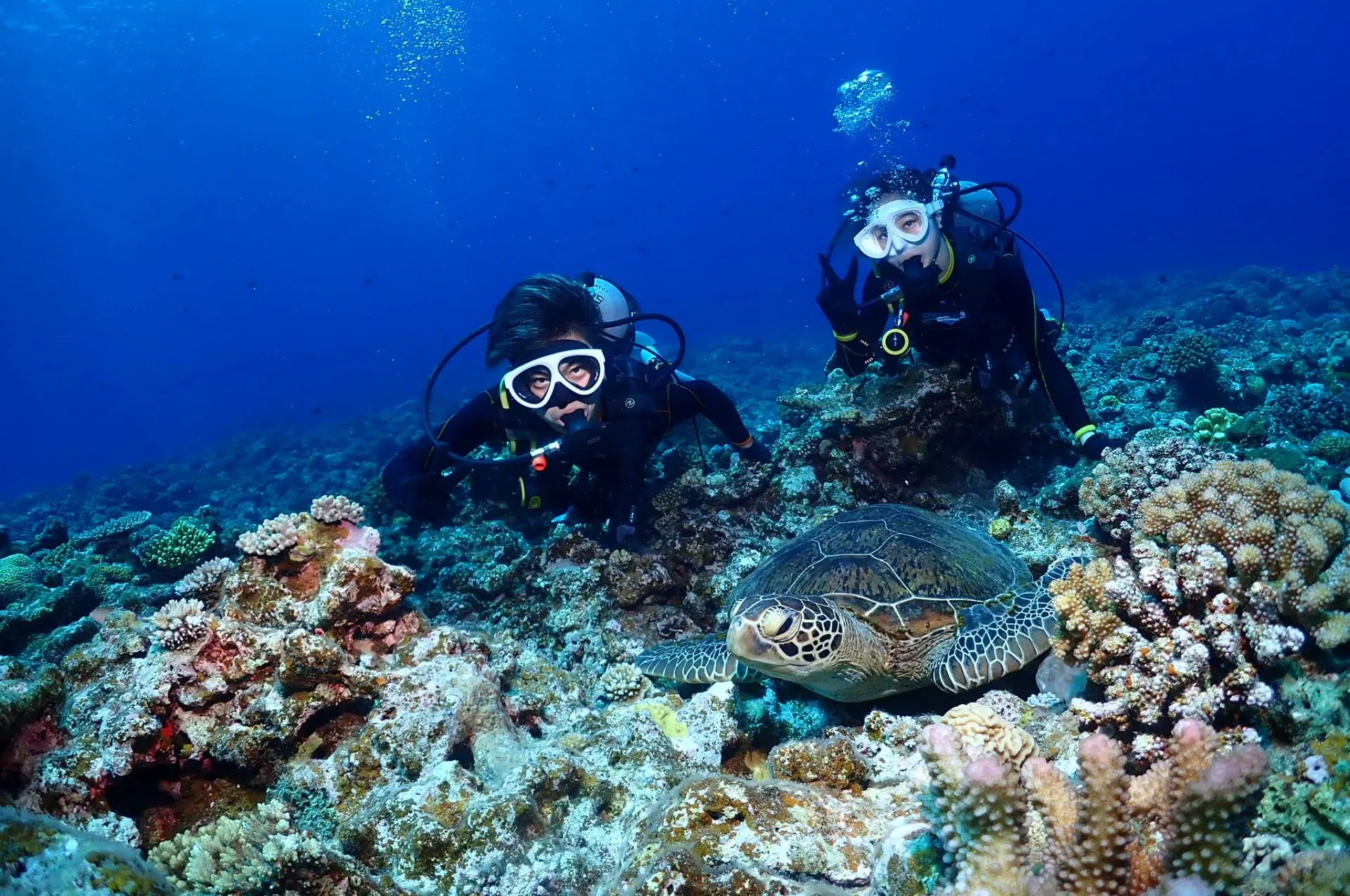 1本目は珊瑚礁に癒されながらアオウミガメ見ることができちゃいました