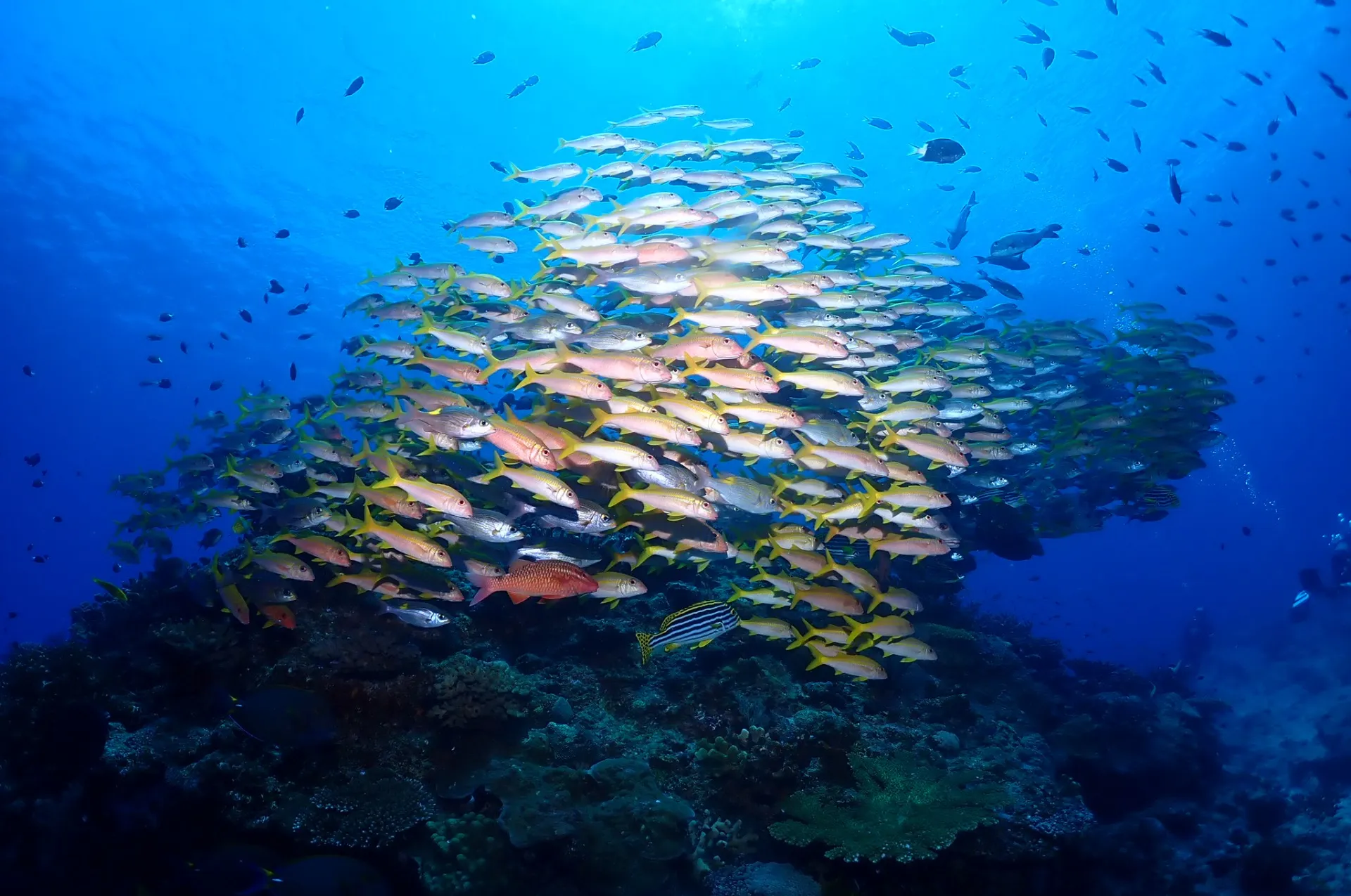 慶良間チームはオールドリフトダイビングで1本目からグルクンとモヨウフグなど見て楽しんできました