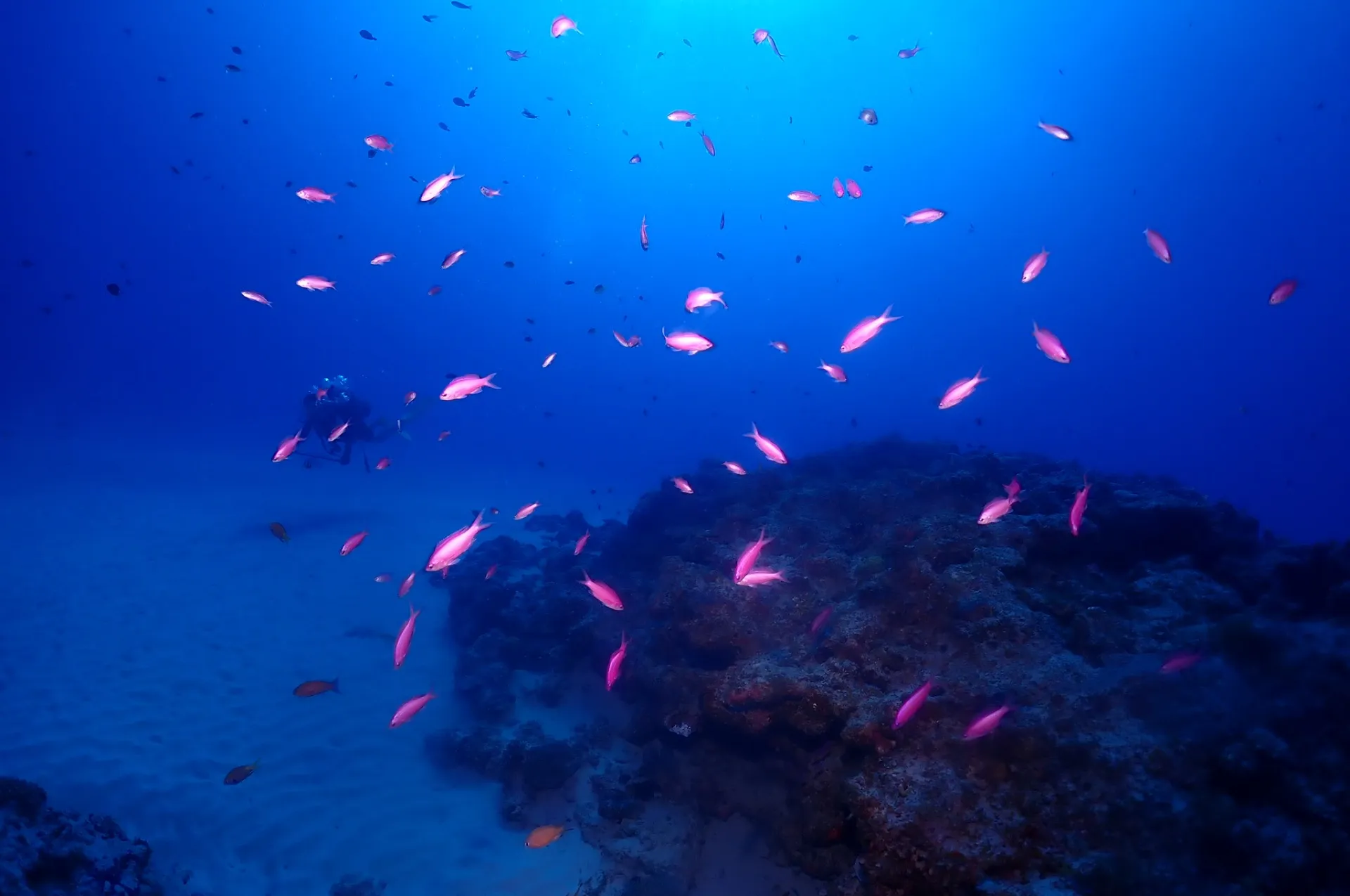 カツオの群れやハナゴイ、ギンギョハナダイに癒されてから流れを楽しんできました