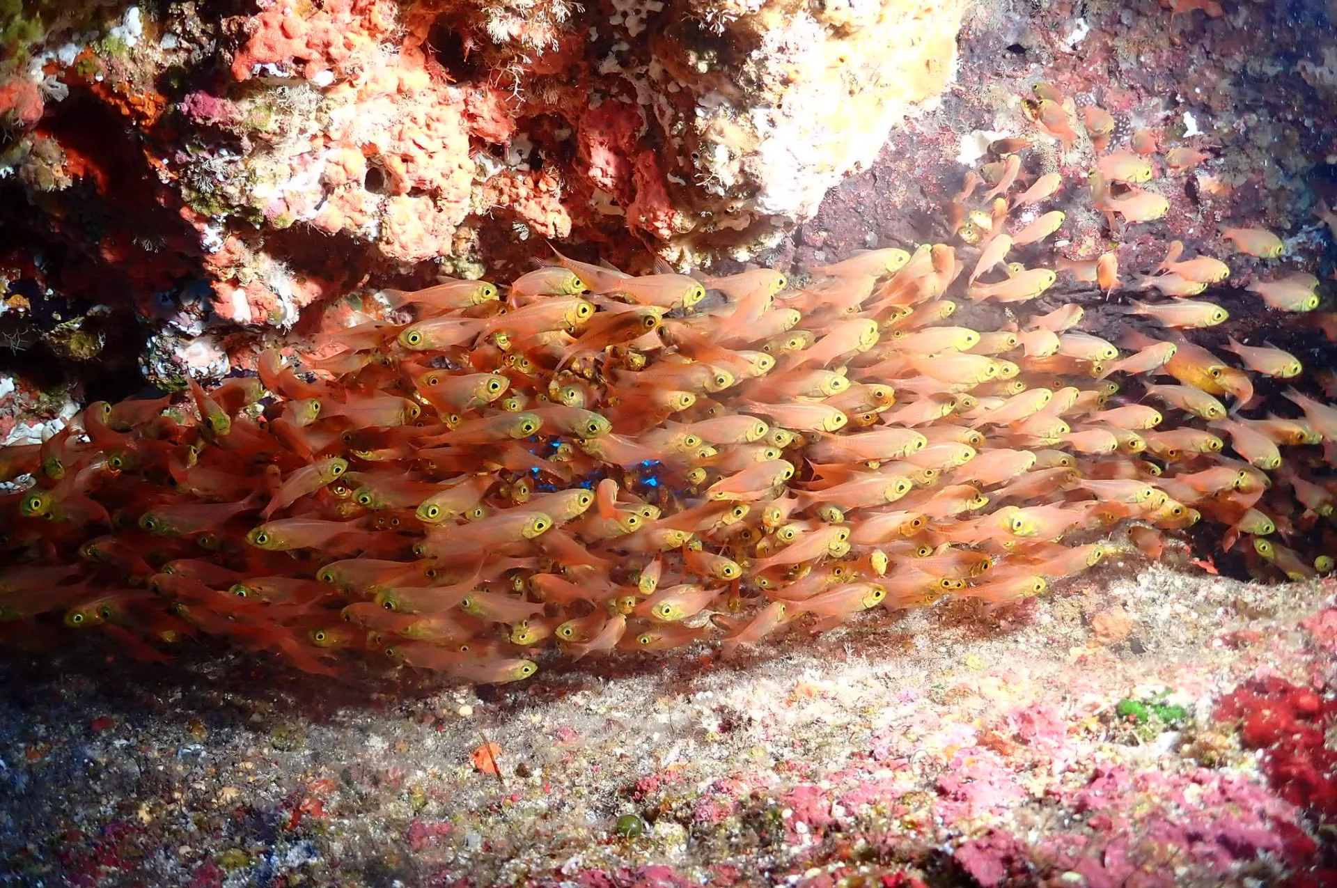 オールドリフトダイビングで1本目はカスミアジやキビナゴ、ギンギョハナダイなど見て流れを楽しんできました