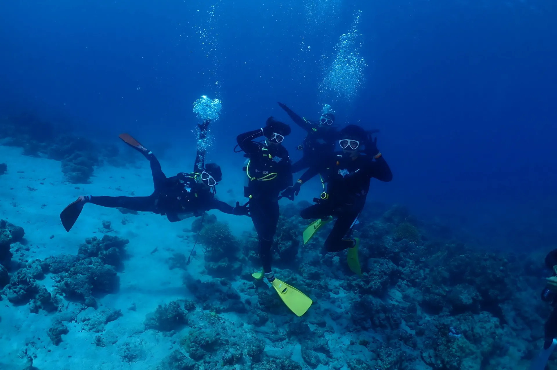 体験ダイビングチームはリピーター様でみんな上手に潜ることができて最後はウミガメにも出会えて楽しんでいただけました!