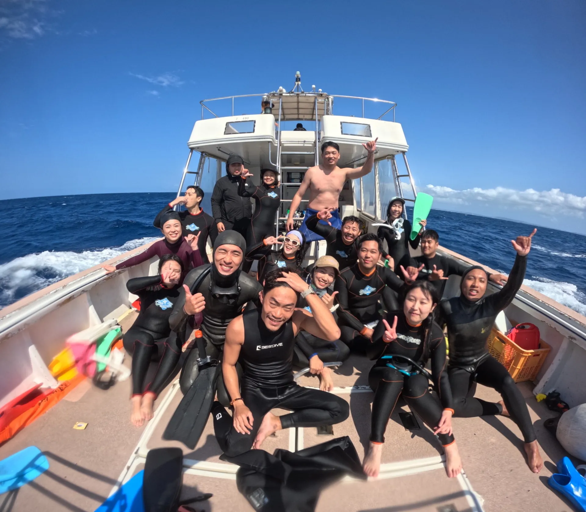 昨日に引き続き台湾ショップツアーのお客様とリピーターのお客様でホエールスイム!
