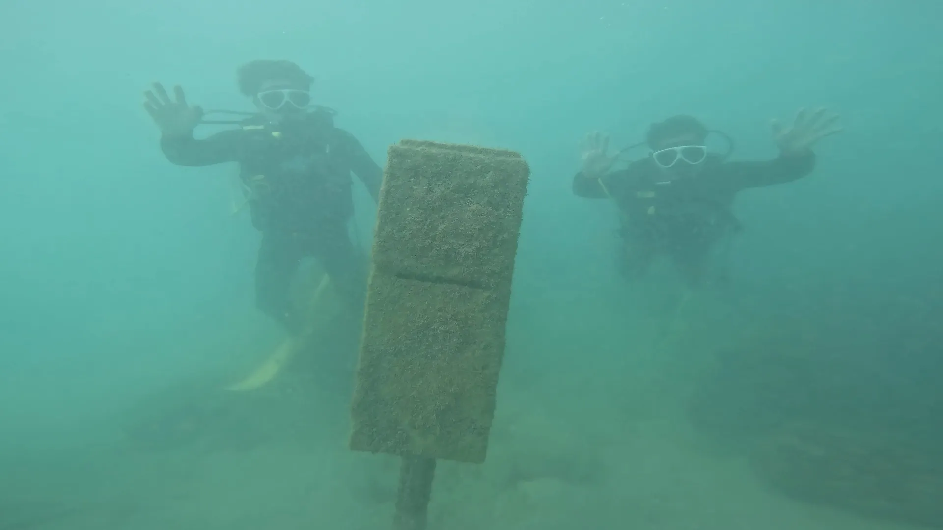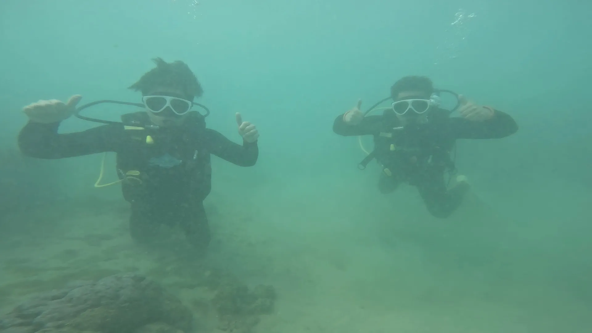 2人ともダイビング経験なしでまず学科からダイビング知識を頭の中に押し込んでから器材のセッティングなどを行いいざ海へ!