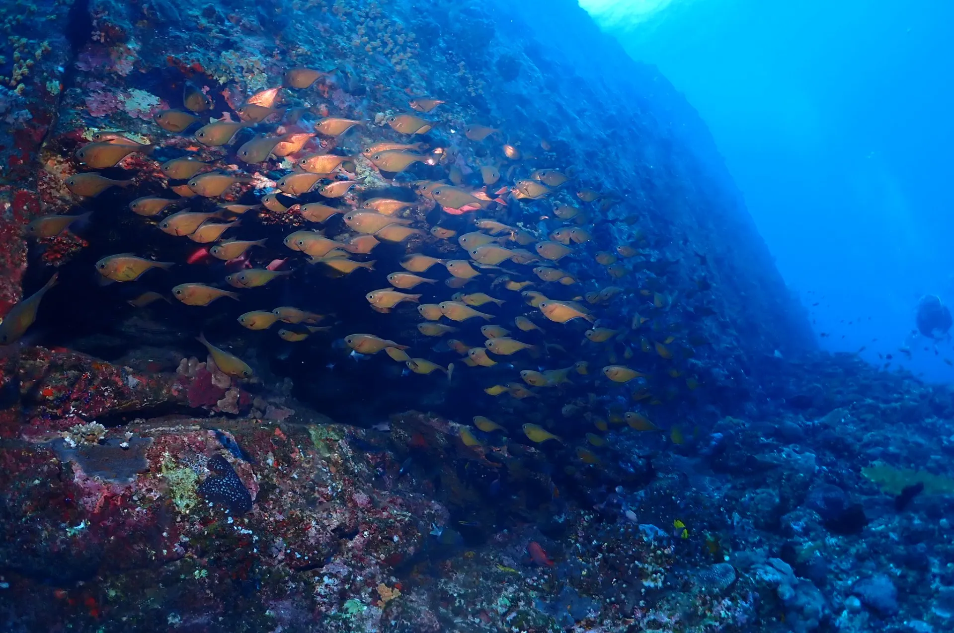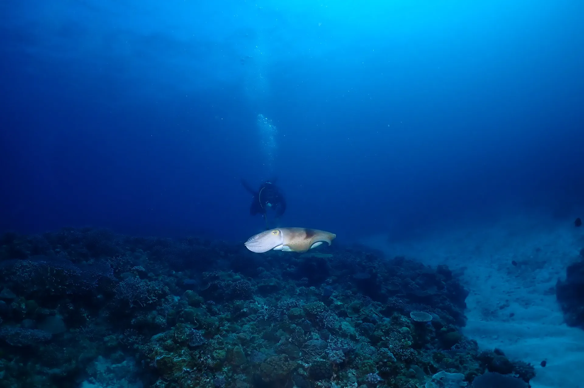 1本目からドリフトダイビングでエントリーしてすぐネムリブカ2匹見てからクジラの大きな鳴き声聞きながらキンギョハナダイやロウニンアジ、グルクン、タイマイなど見て楽しんできました!