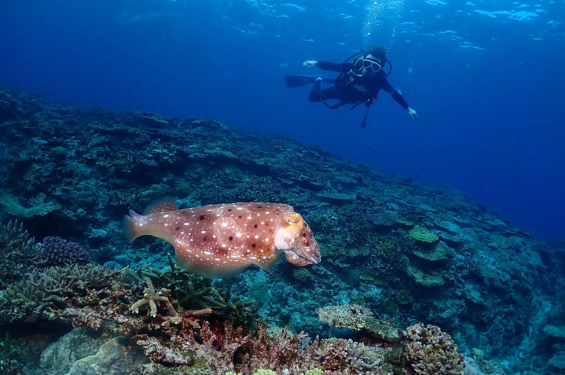 2本目は珊瑚礁に癒されながらハナゴイなど見てからツバメウオの群やコブシメなど見て楽しんできました