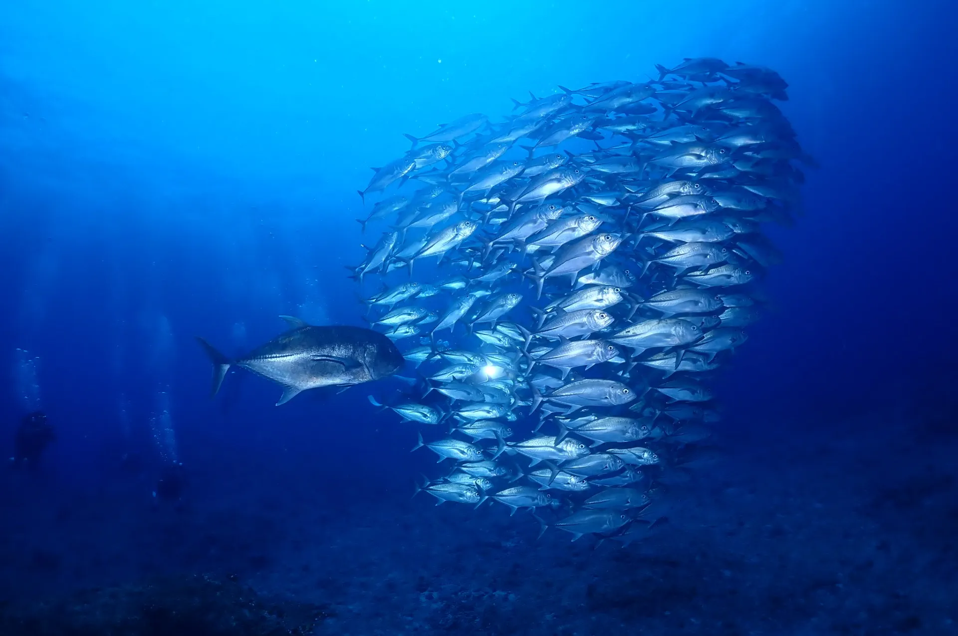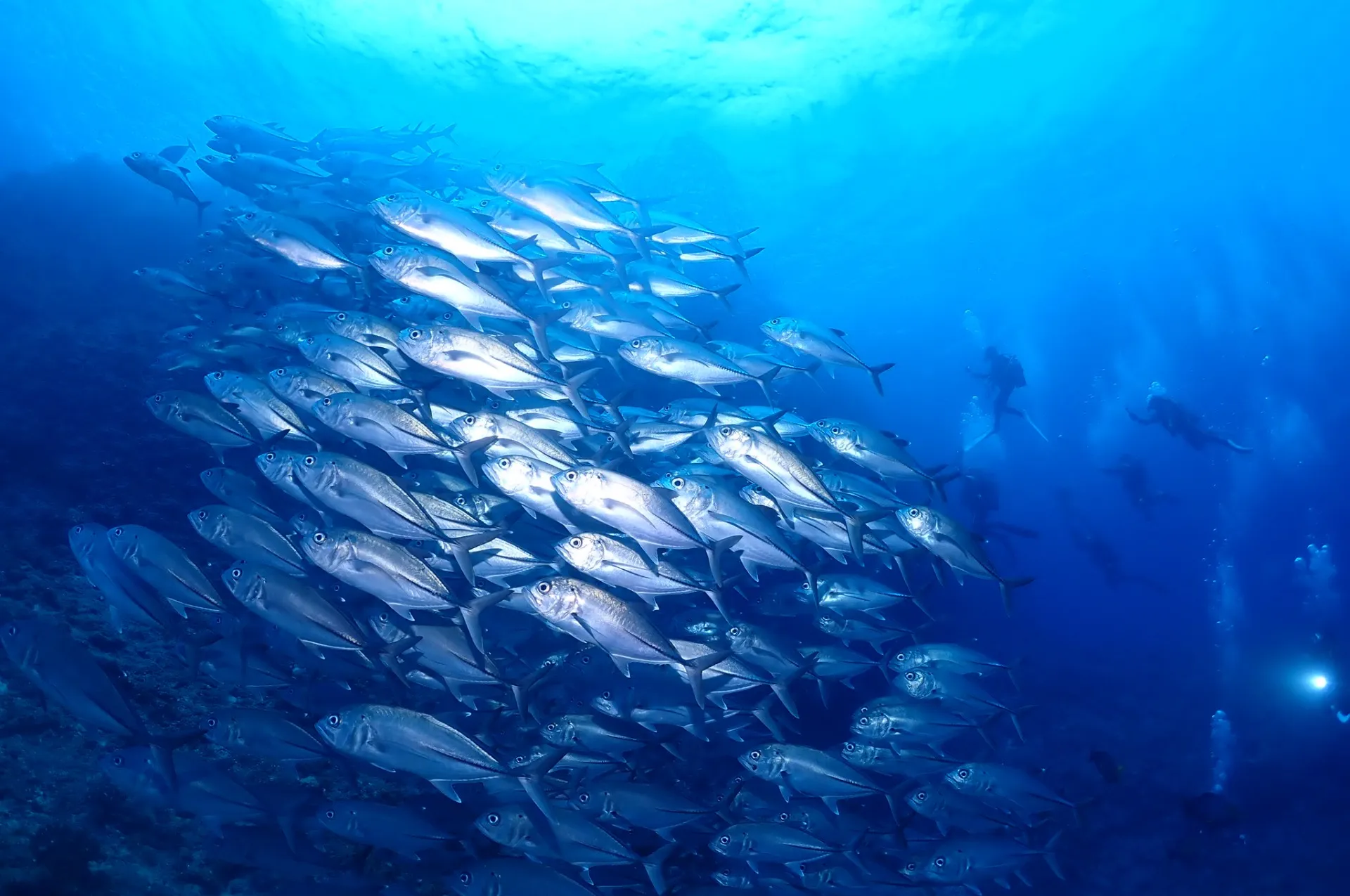 最後はドリフトダイビングでロウニンアジに戯れてから魚影見て楽しんできま様子